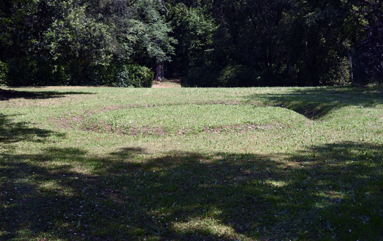 L’opera, collocata in uno spiazzo erboso nel Parco, nasce in stretta relazione con Anello verde di Prato, l’anello circolare in pietra verde di Prato posta nella Fattoria di Celle. Cerchio di erba si presenta come la sua impronta, della stessa dimensione, evocando la possibile e passata presenza delle pietre sull’erba, come se vi fossero state adagiate per un certo tempo. Oggi, attraversando il prato, si scorge il segno che gioca sul rapporto tra visibile invisibile, tra presenza e assenza.