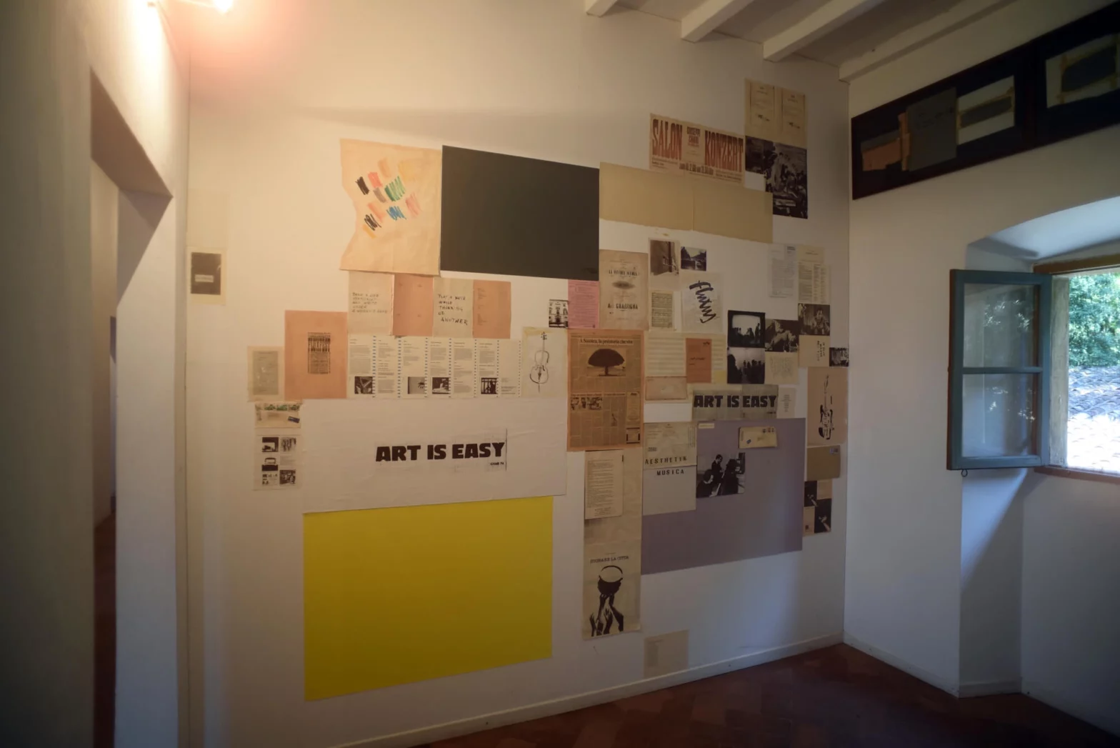 L’artista poliedrico, riconducibile al movimento Fluxus, giunge a Fattoria di Celle nel 1990 insieme all’assistente Tommaso Tozzi. Qui realizza un collage a mo’ di diario personale, attaccando al muro della Fattoria documenti, stampe, testi, locandine e poster originali, parte del suo percorso artistico. Il collage si configura come un’opera aperta, considerati i cambiamenti effettuati nel corso degli anni successivi. Di particolare interesse, oltre ad alcuni testi da lui scritti, la disposizione sulla parete destra di otto foto incorniciate che mostrano la performance Come suonare un muro degli anni Sessanta.