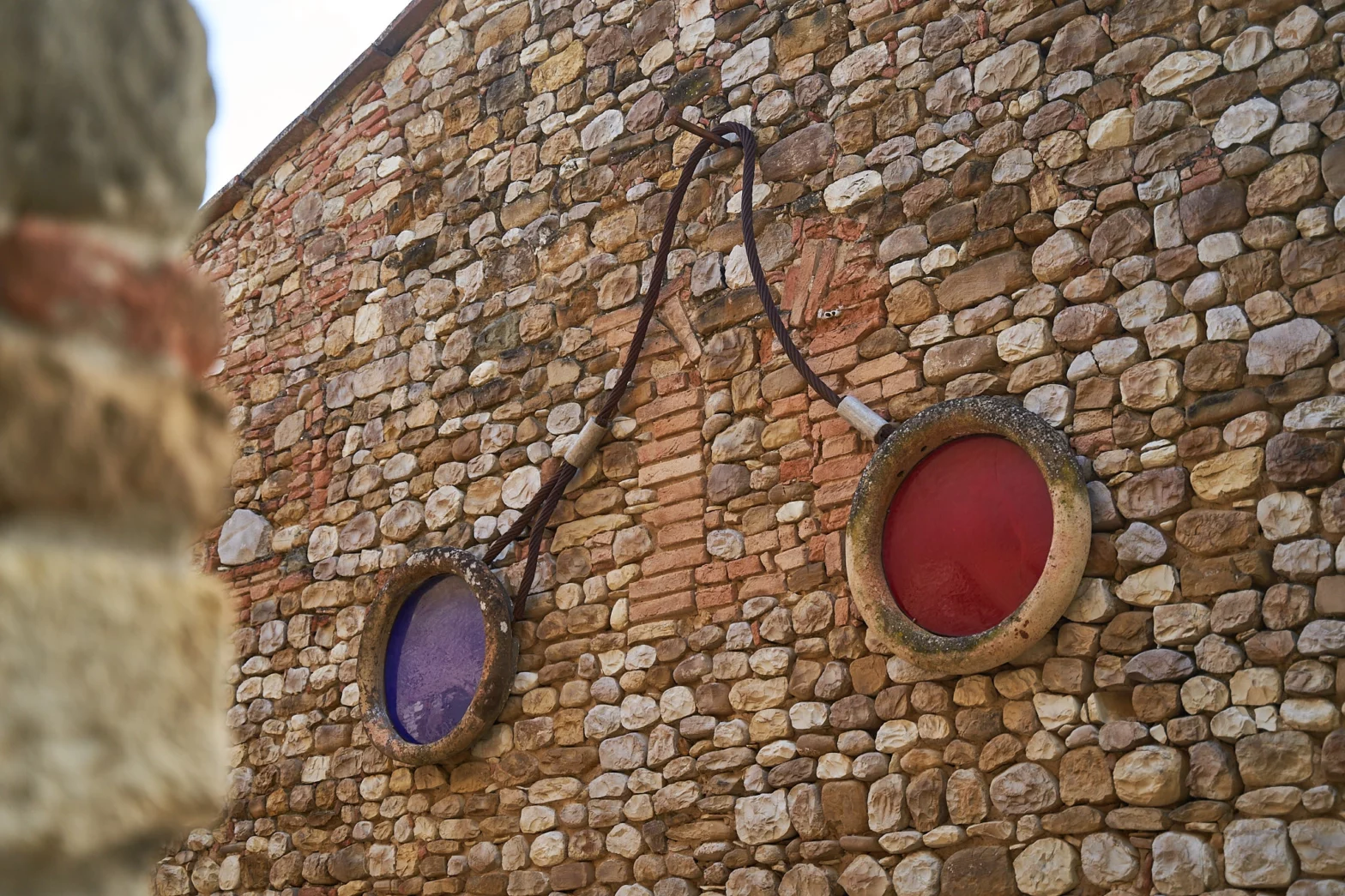 Glasses / Abbraccio, è una scultura emblematica per comprendere la pratica artistica di Franz Stähler in quanto emerge con evidenza la capacità dell’artista di trasformare la materia, di dare un nuova vita tramite l’assemblaggio e il ricollocamento. Il titolo evoca l’immagine di un grande paio di occhiali appesi a parete, con lenti cromatiche, una rossa e una blu, ma al contempo richiama l’idea di un abbraccio, quindi un incontro tra forme. Per Stähler tuttavia, non è tanto importante il significato simbolico, ma la percezione immediata dello spettatore, quella forza immaginativa che si genera nell’incontro tra arte e uomo.