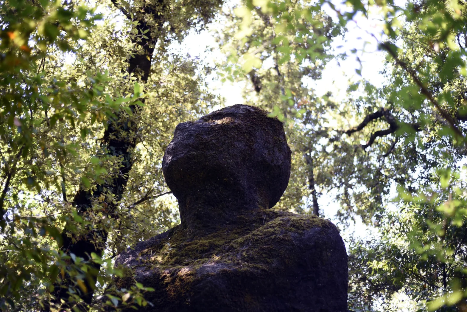 Si tratta di tre figure misteriose, realizzate in vetroresina e poi rivestite di pietra. La più evidente sbuca tra gli alberi in posizione eretta, un’altra invece è sdraiata sulla schiena con le ginocchia piegate, come se stesse riposando, mentre l’ultima appare supina e affonda nel terreno.